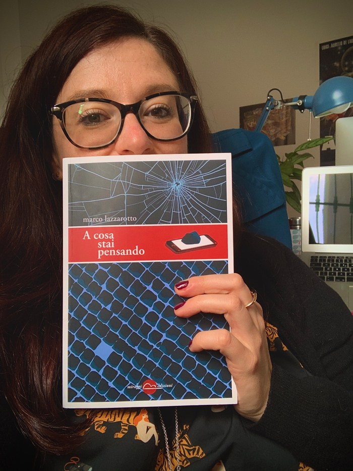 A cosa stai pensando è scritto molto bene ed è molto divertente, pur trattando temi importanti come l’impatto della tecnologia e dei social nelle nostre vite: da Sandra a Crapanzano, a Chtulu, a MorganaScrive, tutti i personaggi sembrano completamente in balia di social e messaggistica istantanea, un po’ come tutti noi siamo. E c’è un gran bisogno di libri come questi, che esasperando un po’ la situazione ce la fanno vedere da un’angolazione differente e ci permettono di analizzarla a freddo, facendoci capire che forse stiamo un po’ perdendo il controllo.